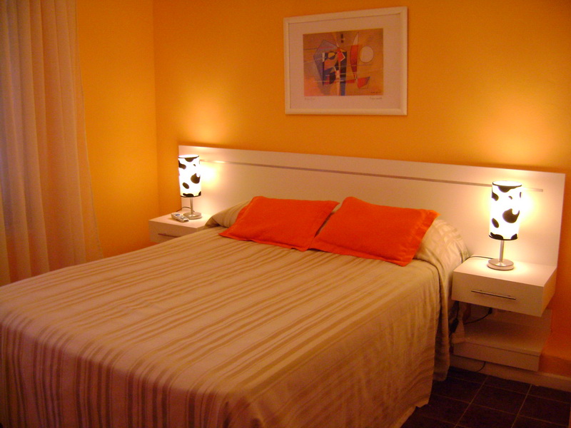 Dormitorio con aire acondicionado, cama matrimonial con colchòn de resortes y somier.